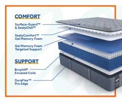- SealyComfort Gel Foam promotes a cooling environment with cushioning comfort, in a variety of feels