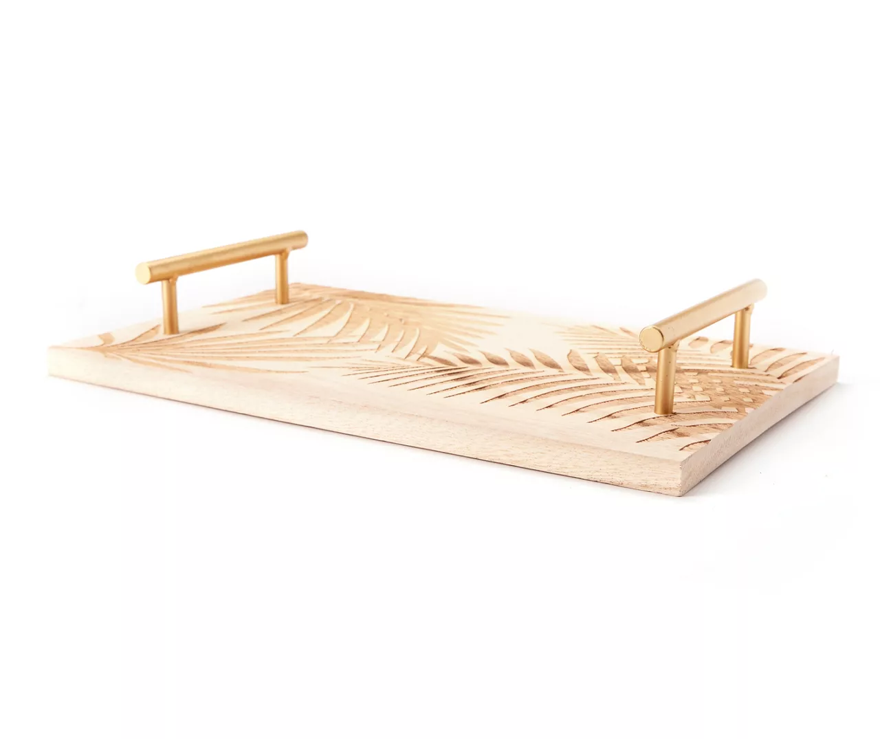 From Broyhill’s Wild Sedona collection, this wooden tray features an elegant boho palm design etched into the base. Golden metal handles adorn either side for a modern, sophisticated look in your living space.